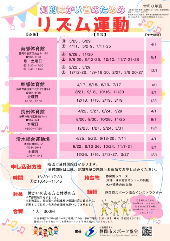 | 教室名 | 知的障がいのある方のためのリズム運動教室 |
